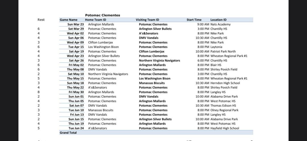 The 2026 Clemente schedule has not been released yet.